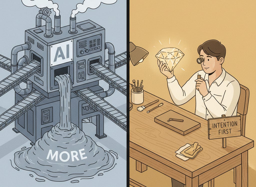 The buzzword today is “AI slop” — and for good reason. Much of what’s being created is blind “more” with no intention and no refinement. If there was a signal-to-noise problem before, it’s only compounded now.